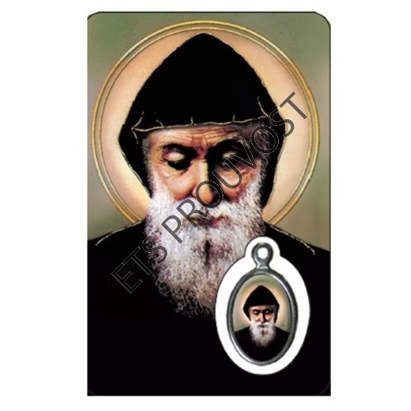 Détail du produit : Carte médaille Saint Charbel. Format carte de crédit. Conditionné par 10ex. Prière du Saint Patron au verso de la carte.