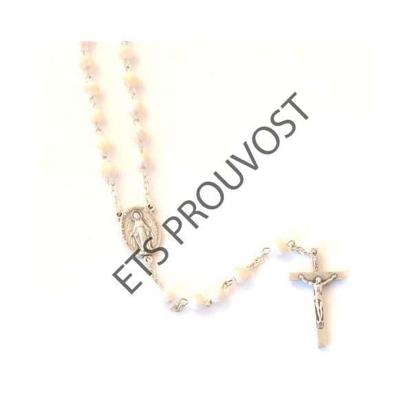 Détail du produit : Chapelet monté sur argenté - perle ronde en nacre véritable 6mm.
