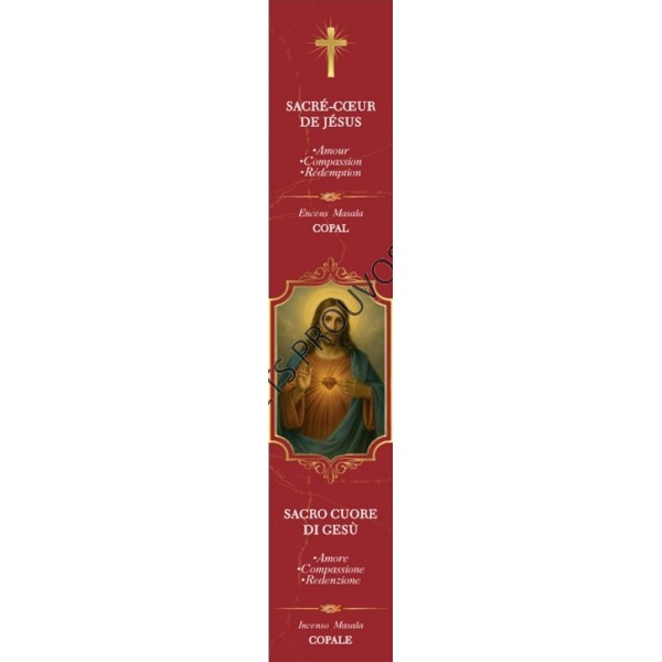 Boite de 12 étuis de 15 batonnets d'encens religieux naturels Sacré Coeur de Jésus.